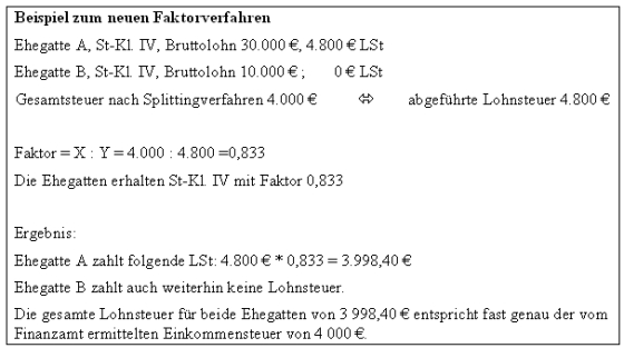 Steuerklassenwahl/Faktorverfahren bei Ehegatten ab 2010
